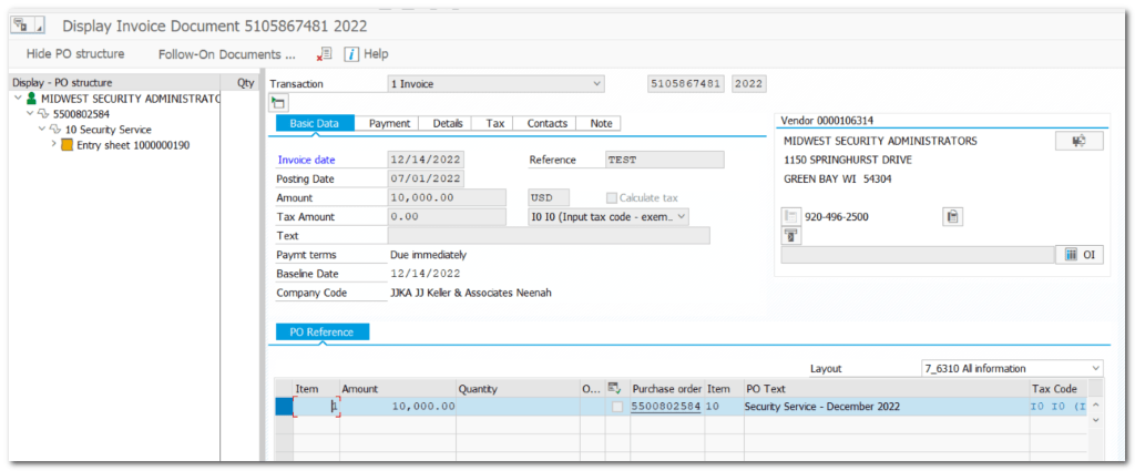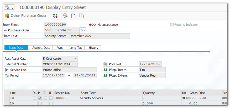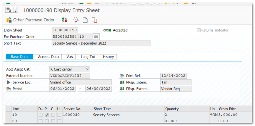 - Invoice verification takes place against the Service Entry Sheets.