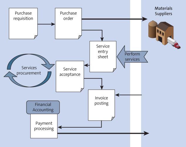 - Service provider performs services, and these services are maintained in Service Entry Sheets