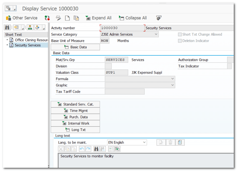 | TCODE | Logistics-MM-Service Master-Service (AC03) |