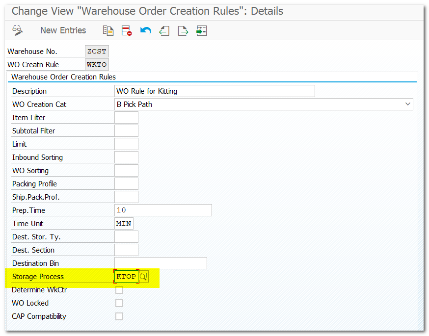 | Note | For outbound process we can’t assign Storage Process to Warehouse Process Type (KTSO) For outbound process, assign Storage Process to Warehouse Order Rule and WO Rule to WPT |