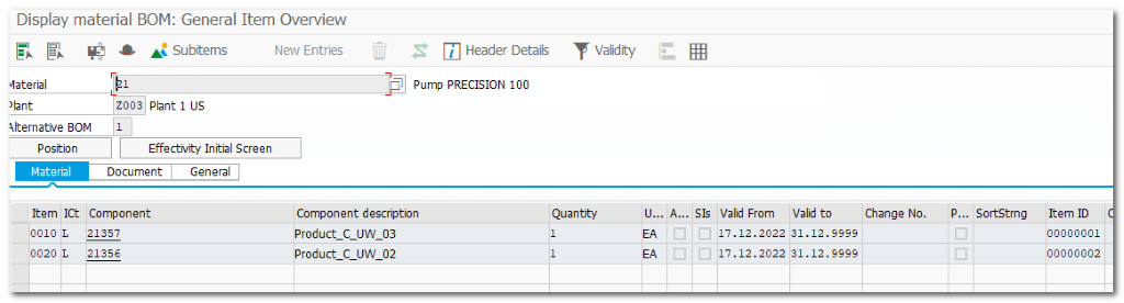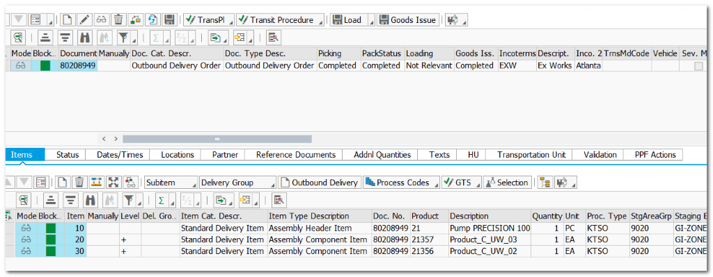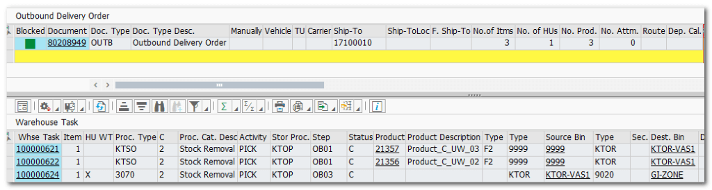 | CS01 VA01 VL01N /SCWM/PRDO /SCWM/VAS | Created Sales BOM Created Sales Order with Sales BOM Created Outbound Delivery Outbound Replicated to EWM VAS Order Created by System Create Warehouse Task from Outbound Delivery in EWM |