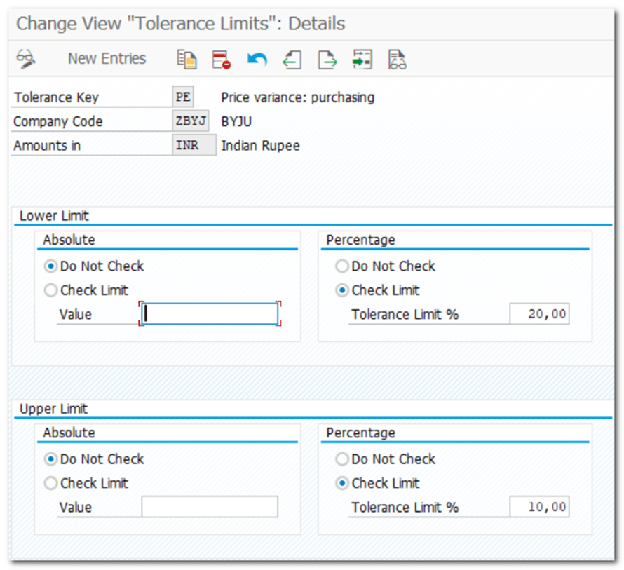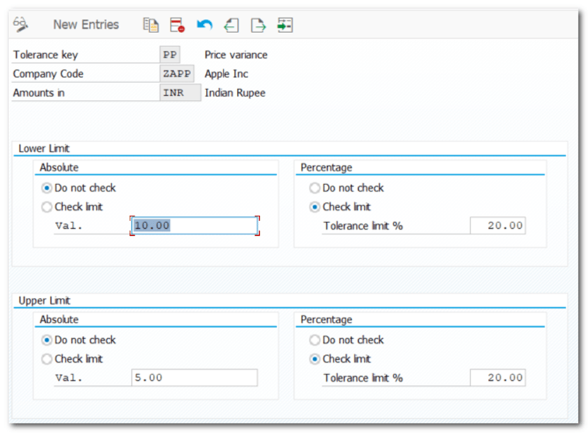 | Step 15 | Define Tolerance Limits while processing Invoice |