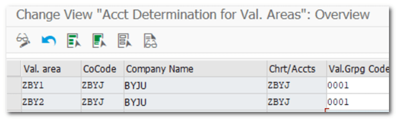 | IMG TCODE | Materials Management- Valuation and Account Assignment- Account Determination- Account Determination Without Wizard- Group Together Valuation Areas |