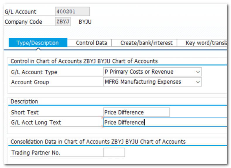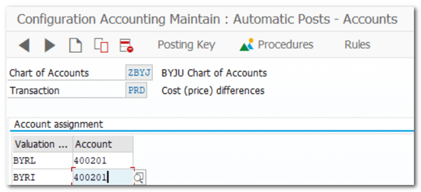 | TCODE 400201 Price Difference | Materials Management- Valuation and Account Assignment- Account Determination- Account Determination Without Wizard- Configure Automatic Postings OBYC |