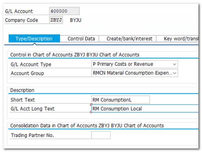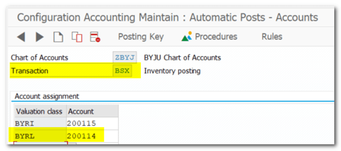 | TCODE | Materials Management- Valuation and Account Assignment- Account Determination- Account Determination Without Wizard- Configure Automatic Postings OBYC 400000 RM Consumption Local 400001 RM Consumption Import |