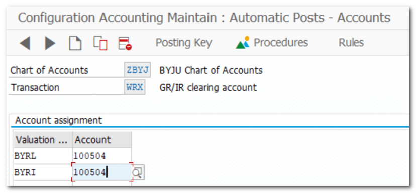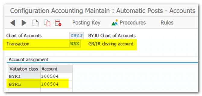 | Step 22 | Assignment of Accounts for Automatic Posting WRX |