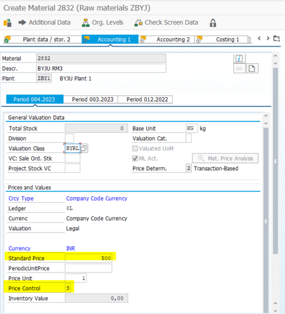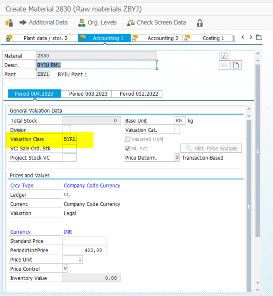 Material Valuation Data update