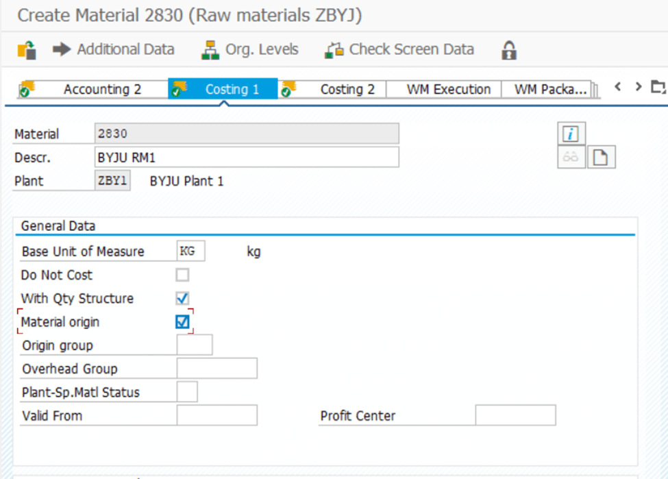 | TCODE | CKMSTART Material Master- Environment- Material Ledger- Environment- Production Startup- CKMSTART – Set Valuation Areas as Productive |