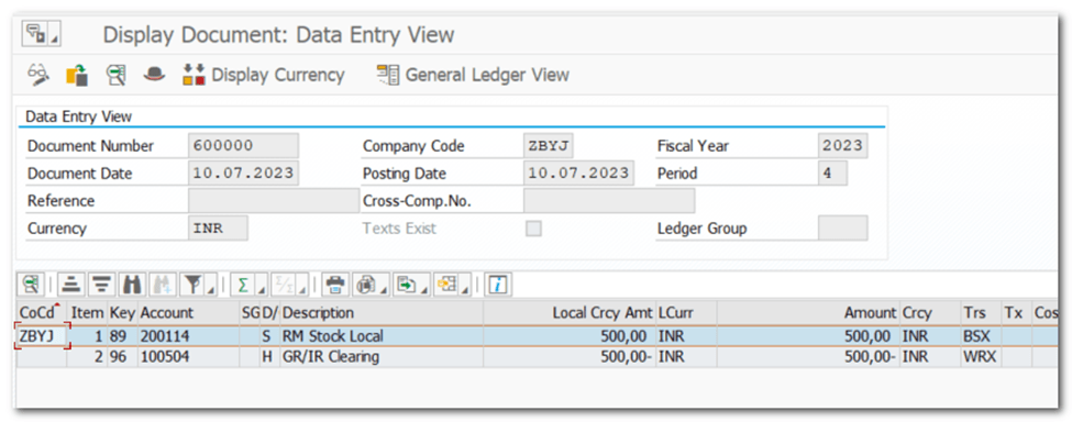 | RM Stock (Dr) GR/IR Clearing (Cr) | 100 (BSX) 100 (WRX) |