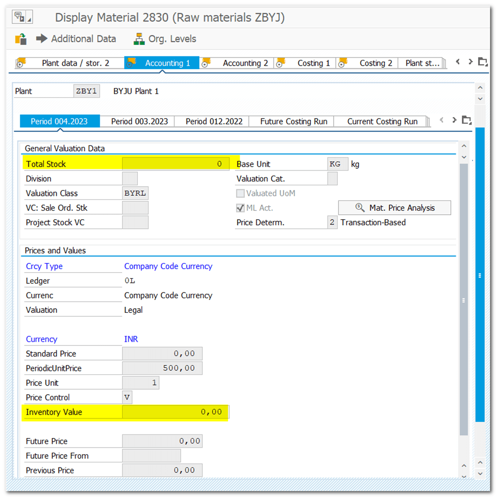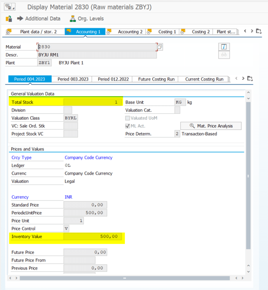 MM03: Check Valuation data (Total Stock, Inventory Value)