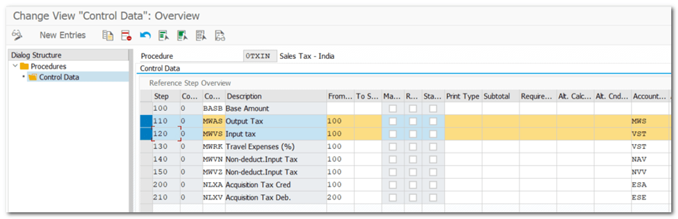 | Input Tax for Purchase Output Tax for Sales Account Key assigned to Condition Type Map G/L account for Account Key |