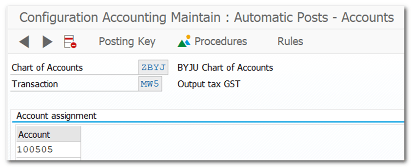 | Step 23 | Assignment of Accounts for Automatic Posting PRD |