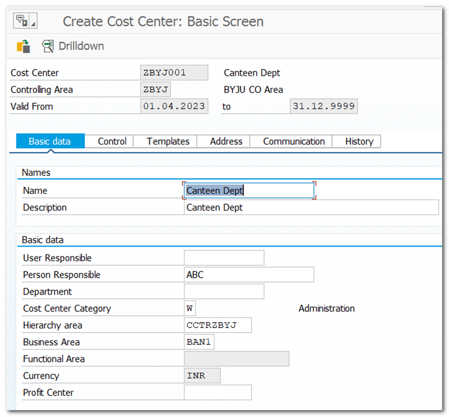 | Step 41 | Creation of Cost Center |