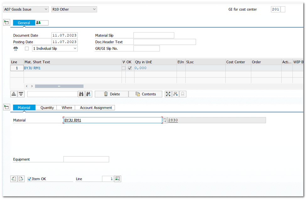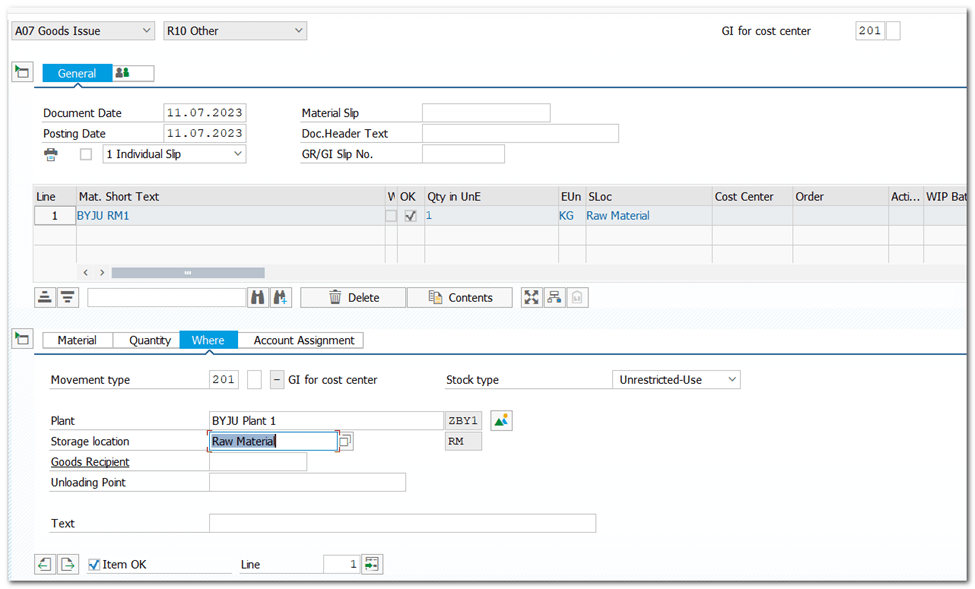 | Step 42 | Goods Issue to Cost Center |