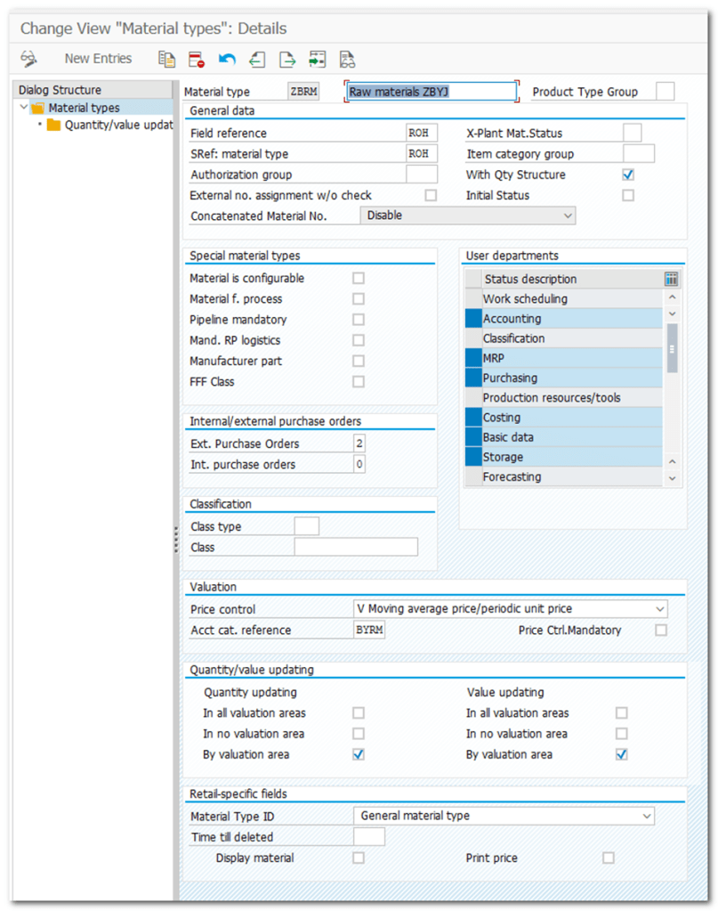 | IMG | Logistics – General- Material Master- Basic Settings- Material Types- Define Attributes of Material Types |