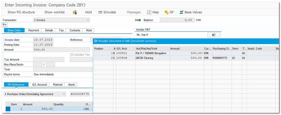 Standard PO created under the number 4500004775