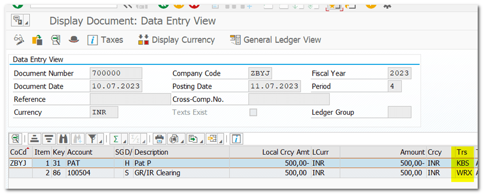 | WA – Goods Issue WE – Goods Receipt RE – Invoice Receipt |